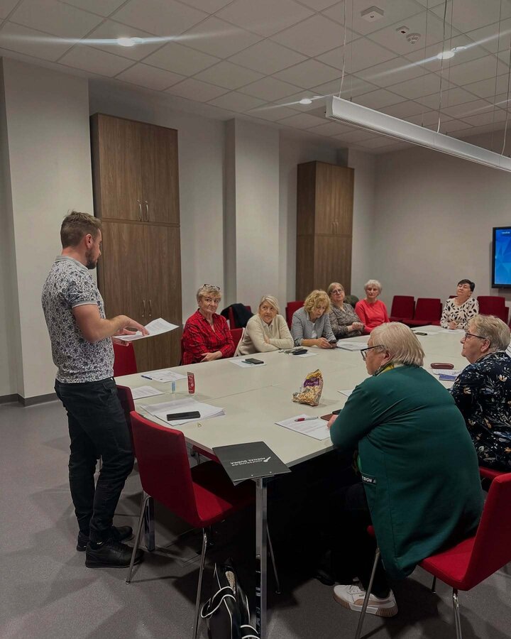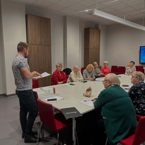 W pierwszej części spotkania skupiliśmy się na ochronie danych osobowych, bezpiecznym korzystaniu z internetu oraz zagrożeniach, na jakie można natrafić w przestrzeni cyfrowej. Michał omówił najważniejsze zasady, dzięki którym korzystanie z sieci może być bardziej świadome i bezpieczne – zarówno dla seniorów, jak i młodszych użytkowników.