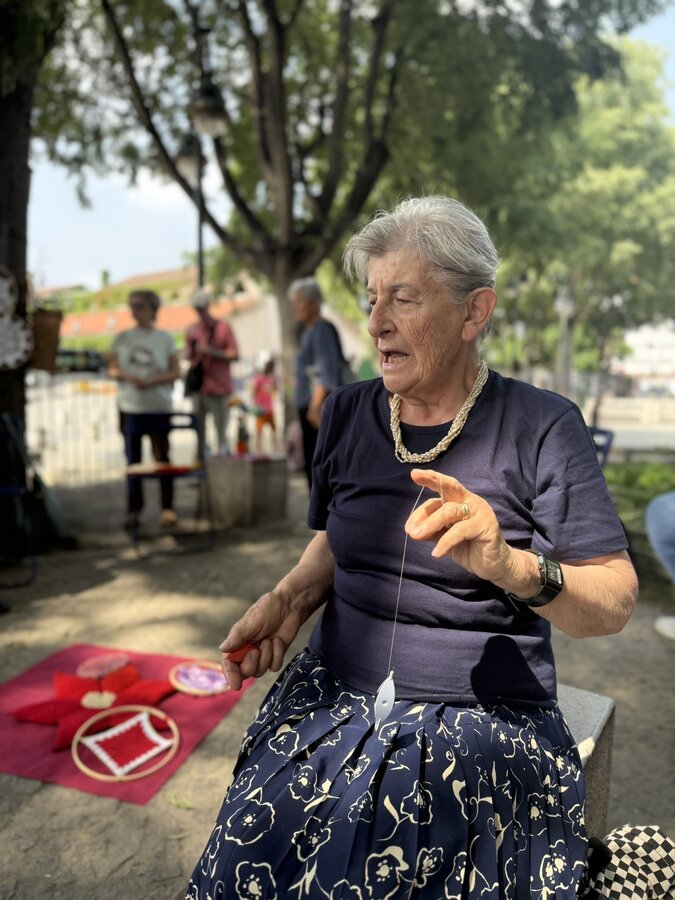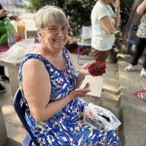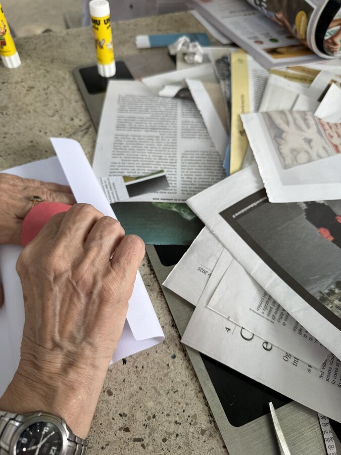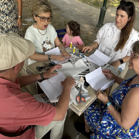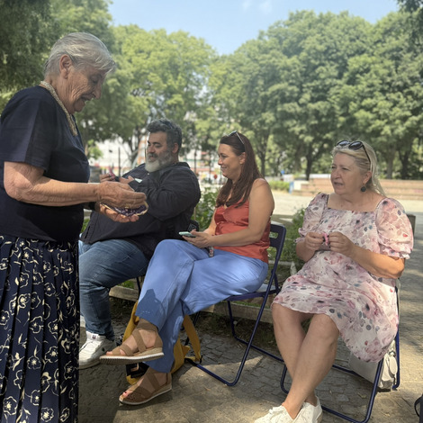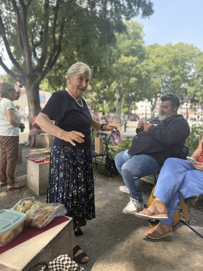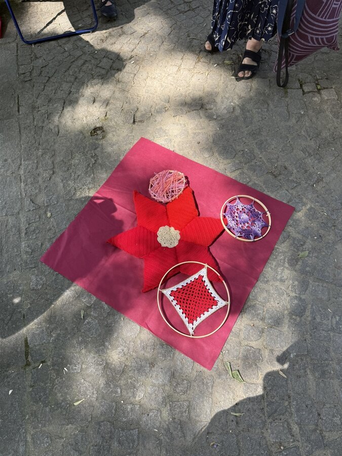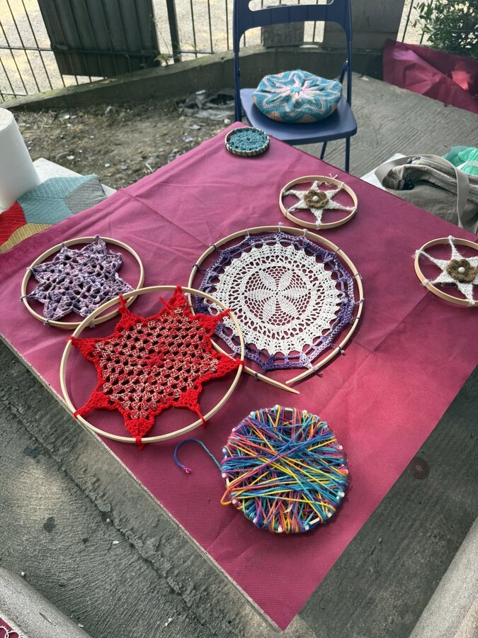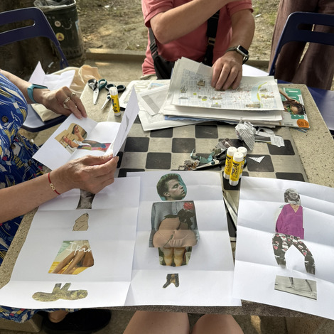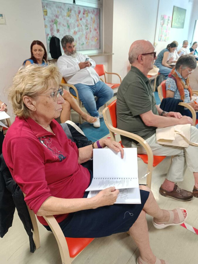 Następnie przyszedł czas na praktyczne działania - pod okiem lokalnych artystek próbowaliśmy swoich sił w szydełkowaniu i tworzeniu serwetek. Nie obyło się bez śmiechu i drobnych potknięć, ale entuzjazmu nie brakowało. Kolejnym punktem programu był warsztat surrealistycznych kolaży prowadzony przez Giancarlo - uczestnika wrocławskiego szkolenia. Efektem były pełne wyobraźni, barwne prace, które stały się kolejnym dowodem na to, że kreatywność nie zna wieku.