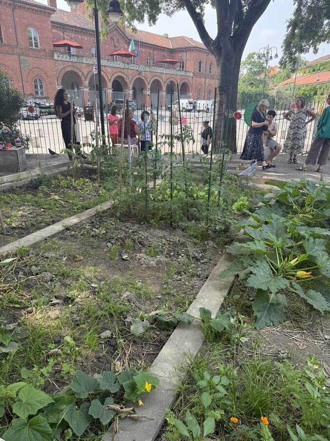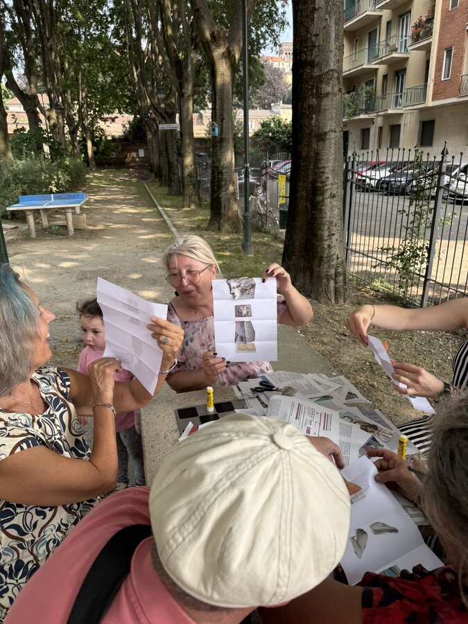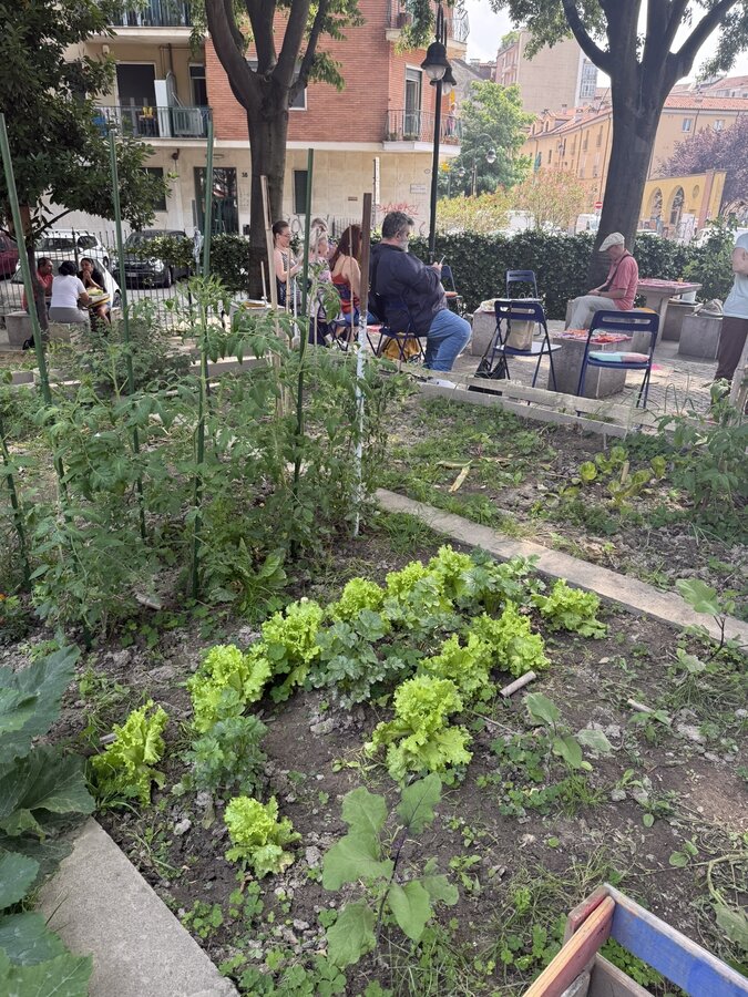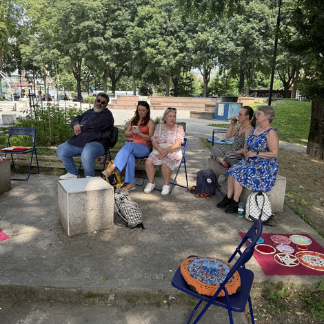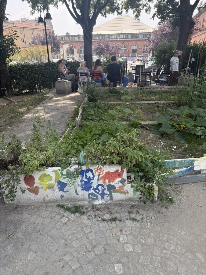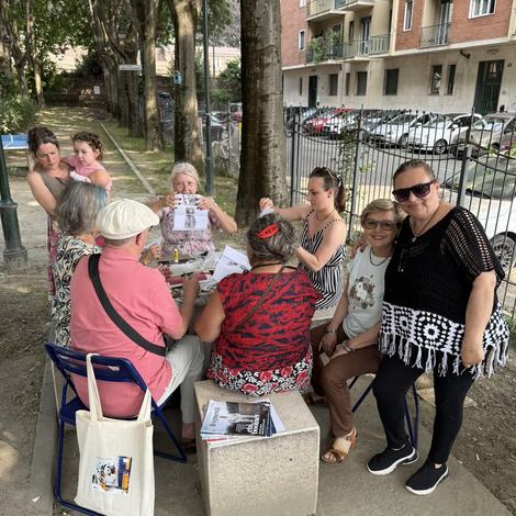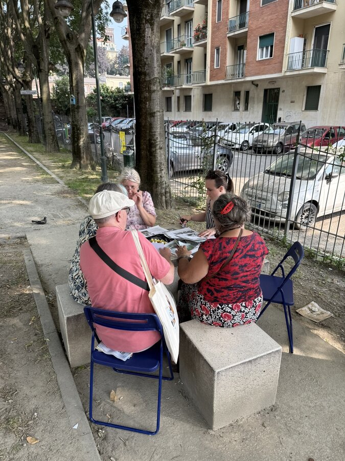 Po lunchu przenieśliśmy się w niezwykłą przestrzeń - do parku Pellegrino. Tam czekały na nas Marisa i Lucia, uczestniczki projektu, wraz z grupą lokalnych aktywistek. Opowiedziały historię parku, jego znaczenie dla społeczności i sposoby, w jakie wspólnie o niego dbają.
