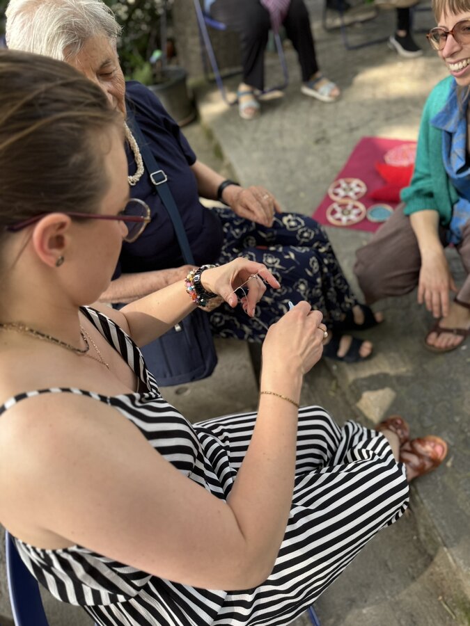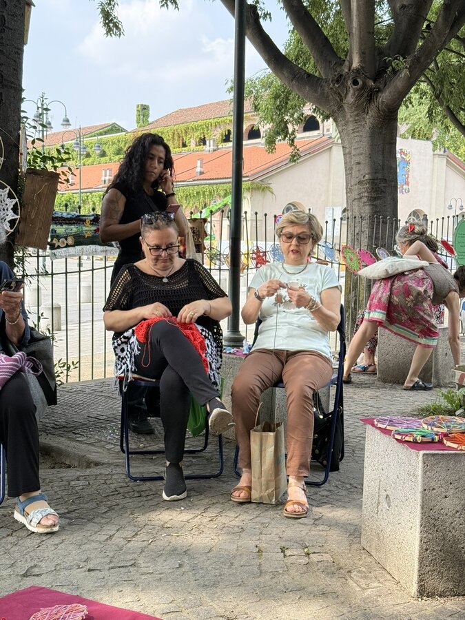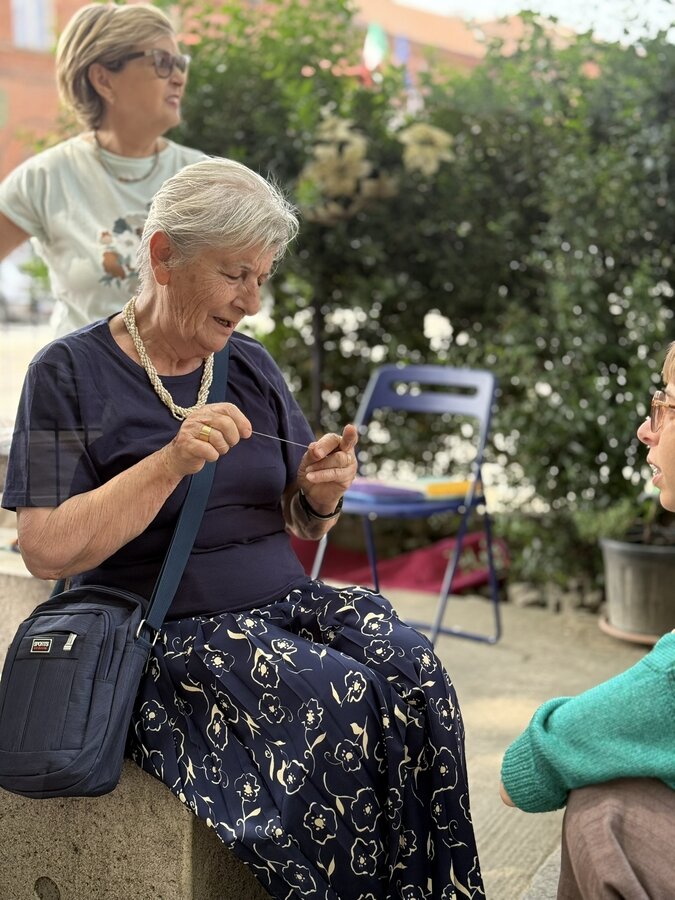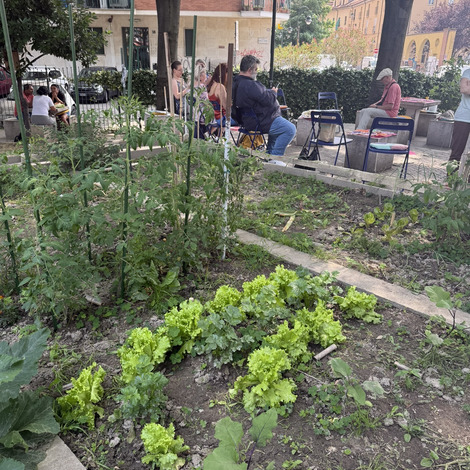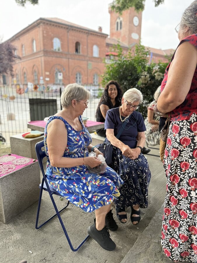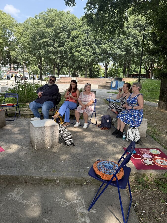 Po lunchu przenieśliśmy się w niezwykłą przestrzeń - do parku Pellegrino. Tam czekały na nas Marisa i Lucia, uczestniczki projektu, wraz z grupą lokalnych aktywistek. Opowiedziały historię parku, jego znaczenie dla społeczności i sposoby, w jakie wspólnie o niego dbają.