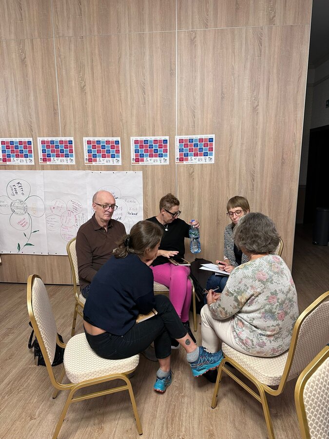 Drugi dzień szkolenia skupił się na ustaleniu wspólnych zasad współpracy. Każdy z uczestników podzielił się swoimi oczekiwaniami oraz obawami, co pomogło w stworzeniu tzw. „Kontraktu” – zasad, którymi kierowaliśmy się podczas kolejnych dni. Kluczowym tematem dnia była aktywizacja seniorów – wymienialiśmy się doświadczeniami i omawialiśmy sprawdzone metody, które będą przydatne w pracy w naszych społecznościach. Popołudniowe sesje pełne kreatywnych ćwiczeń, takich jak malowanie po numerach i rozwiązywanie sudoku, doskonale rozwijały koncentrację i wyobraźnię.