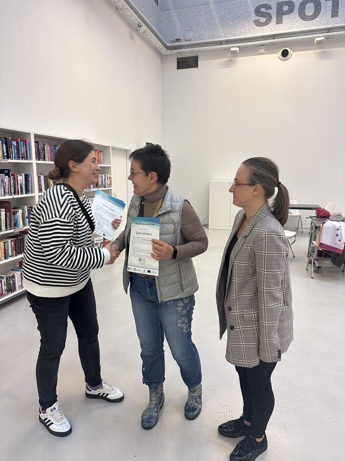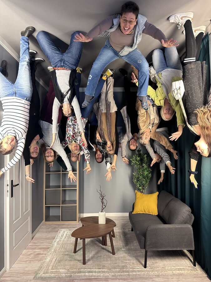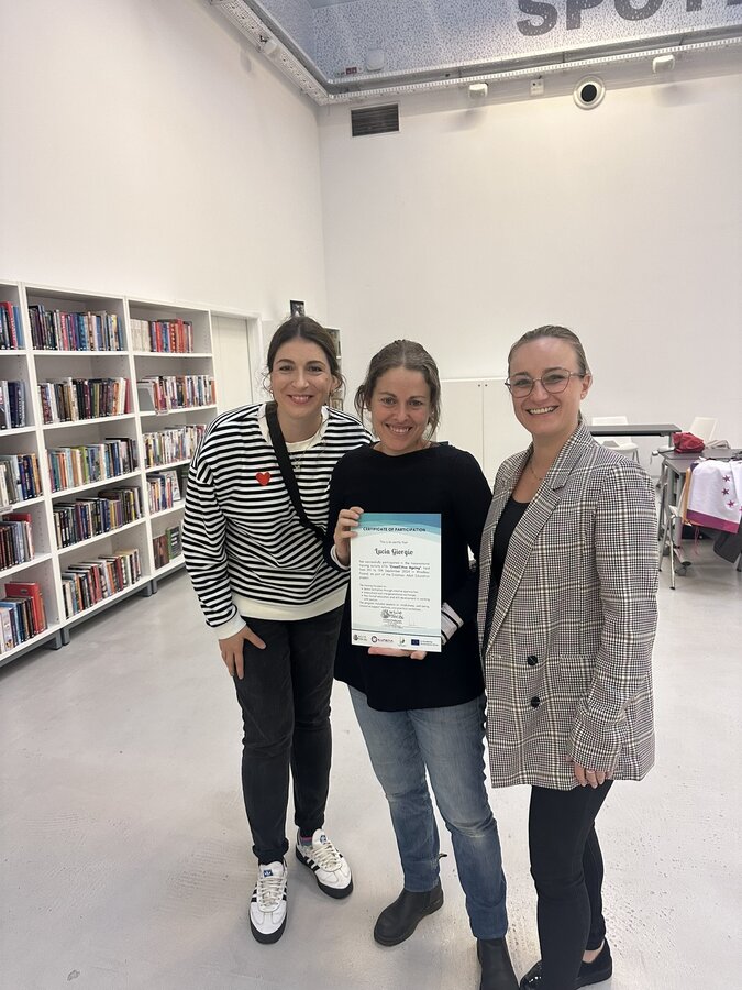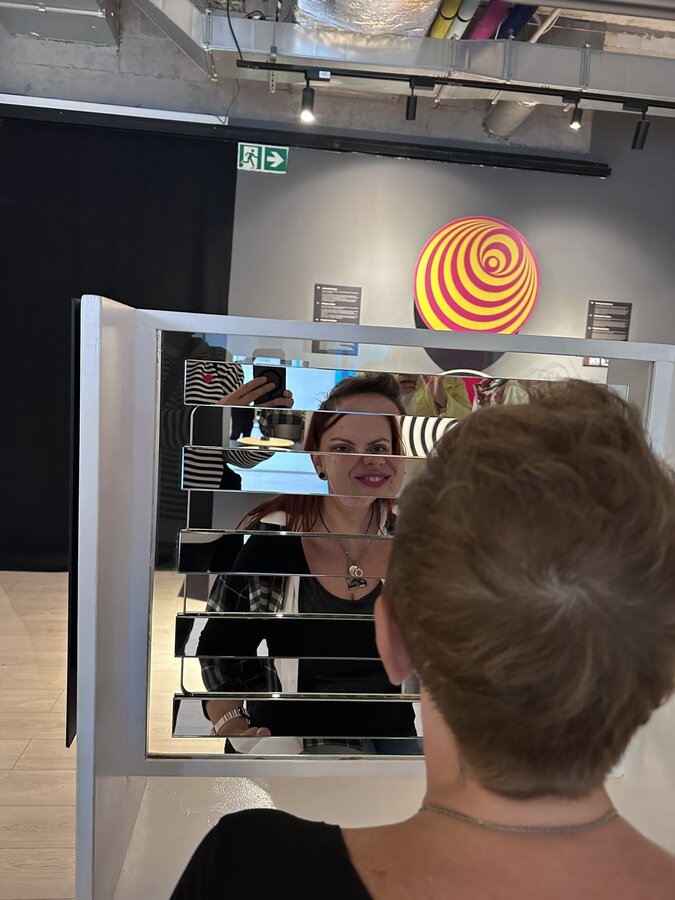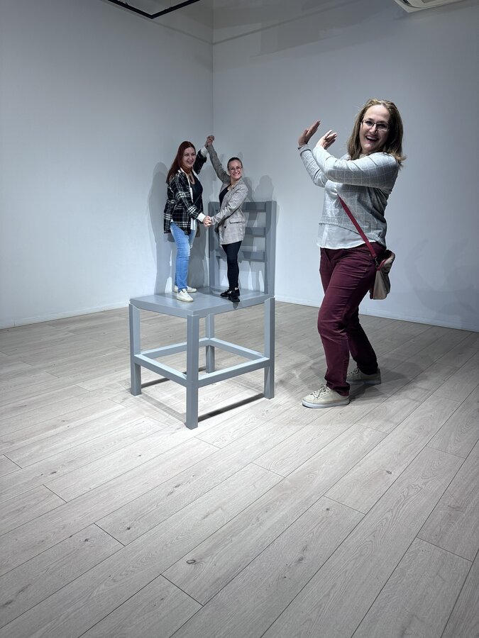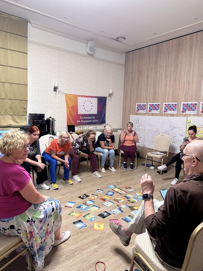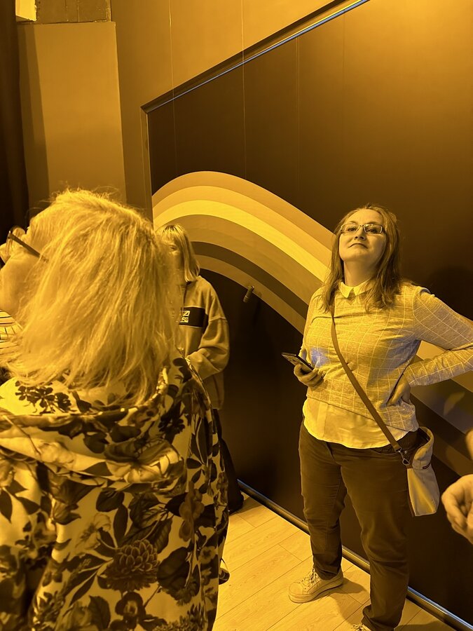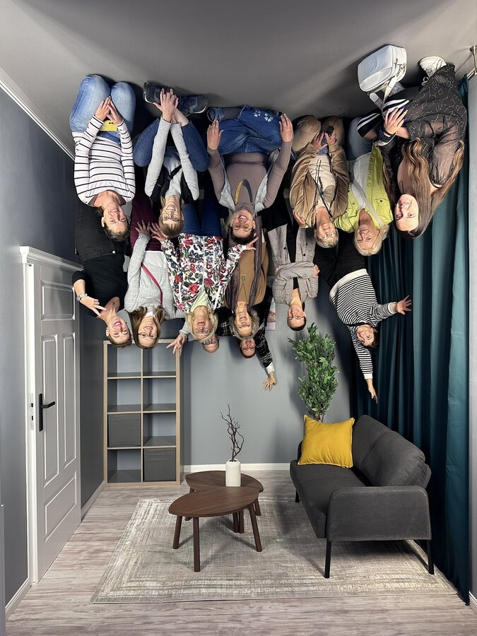 Ostatni dzień szkolenia przyniósł niespodzianki – planowane warsztaty robotyki dla seniorów musieliśmy odwołać z powodu niesprzyjającej pogody, ale szybko przystosowaliśmy się do zmienionych okoliczności. Zamiast tego odwiedziliśmy Muzeum Iluzji, które dostarczyło wielu wrażeń i zainspirowało nas do dalszych rozmów o roli percepcji w codziennym życiu. Dzień zakończył się wspólnym obiadem oraz wystawą „Portret samotności”, która poruszyła nas wszystkich. Ostatnim punktem programu było wręczenie certyfikatów, a atmosfera podziękowań i wzruszeń była niezwykle intensywna.