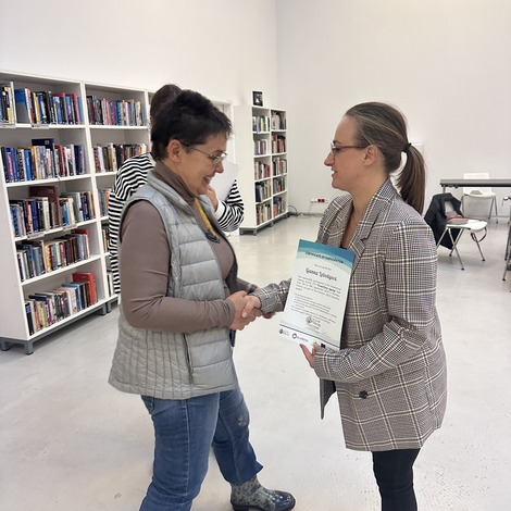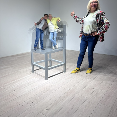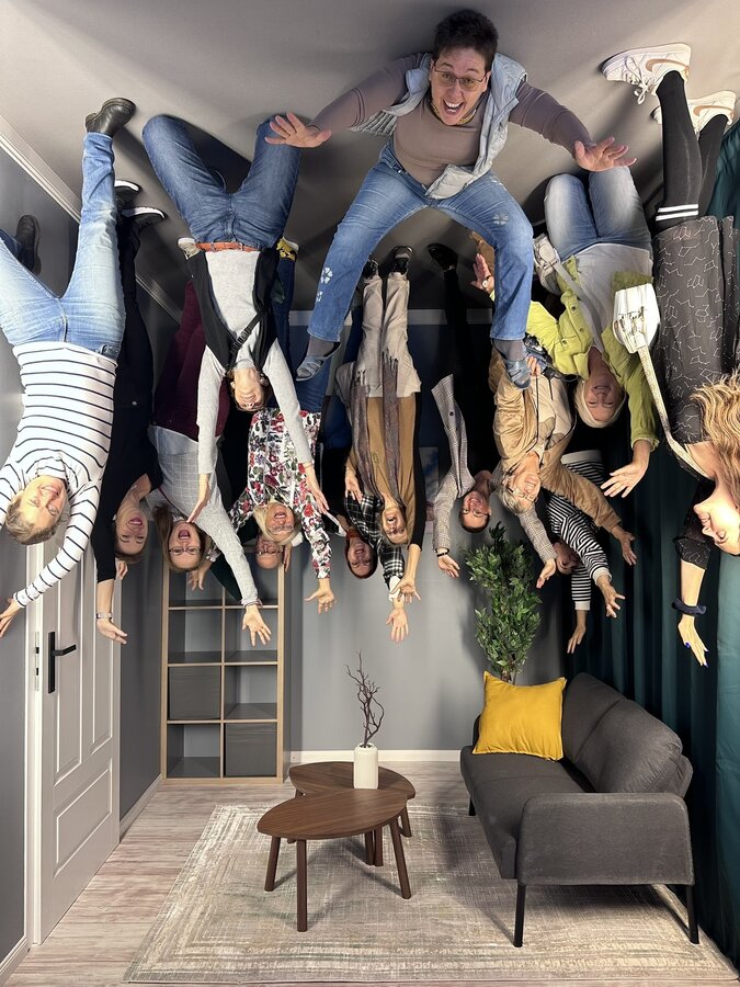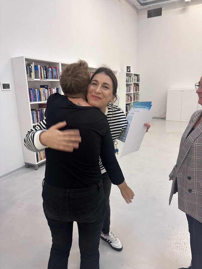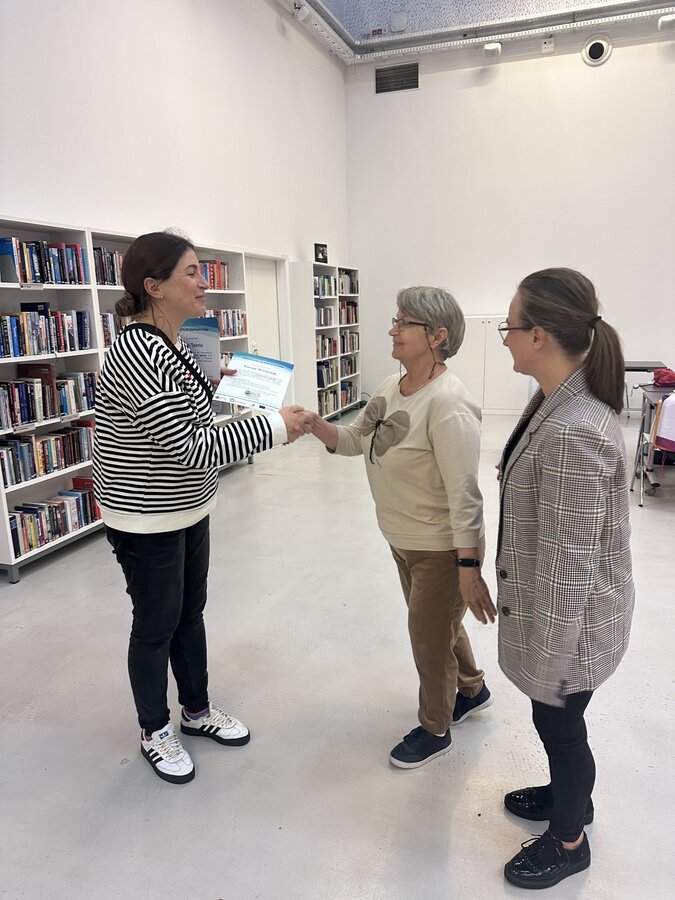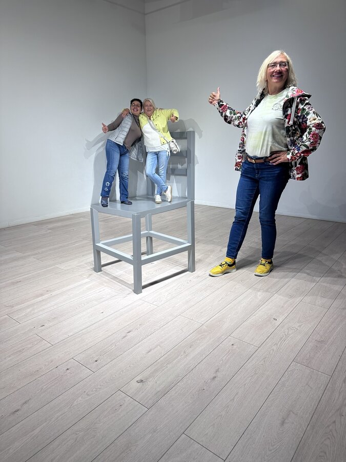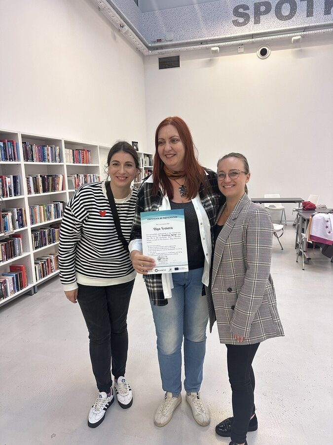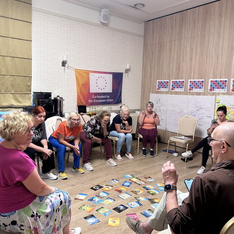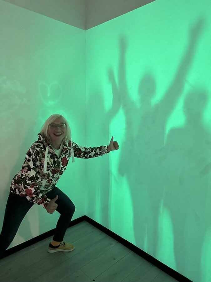 Ostatni dzień szkolenia przyniósł niespodzianki – planowane warsztaty robotyki dla seniorów musieliśmy odwołać z powodu niesprzyjającej pogody, ale szybko przystosowaliśmy się do zmienionych okoliczności. Zamiast tego odwiedziliśmy Muzeum Iluzji, które dostarczyło wielu wrażeń i zainspirowało nas do dalszych rozmów o roli percepcji w codziennym życiu. Dzień zakończył się wspólnym obiadem oraz wystawą „Portret samotności”, która poruszyła nas wszystkich. Ostatnim punktem programu było wręczenie certyfikatów, a atmosfera podziękowań i wzruszeń była niezwykle intensywna.
