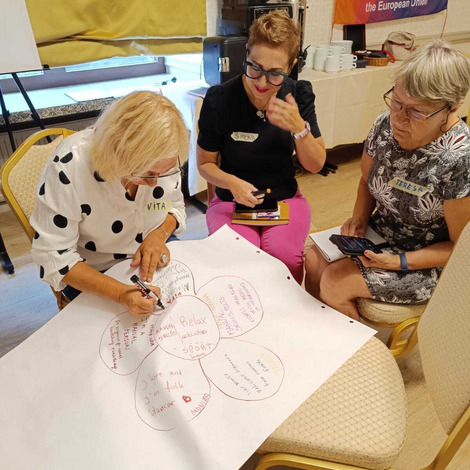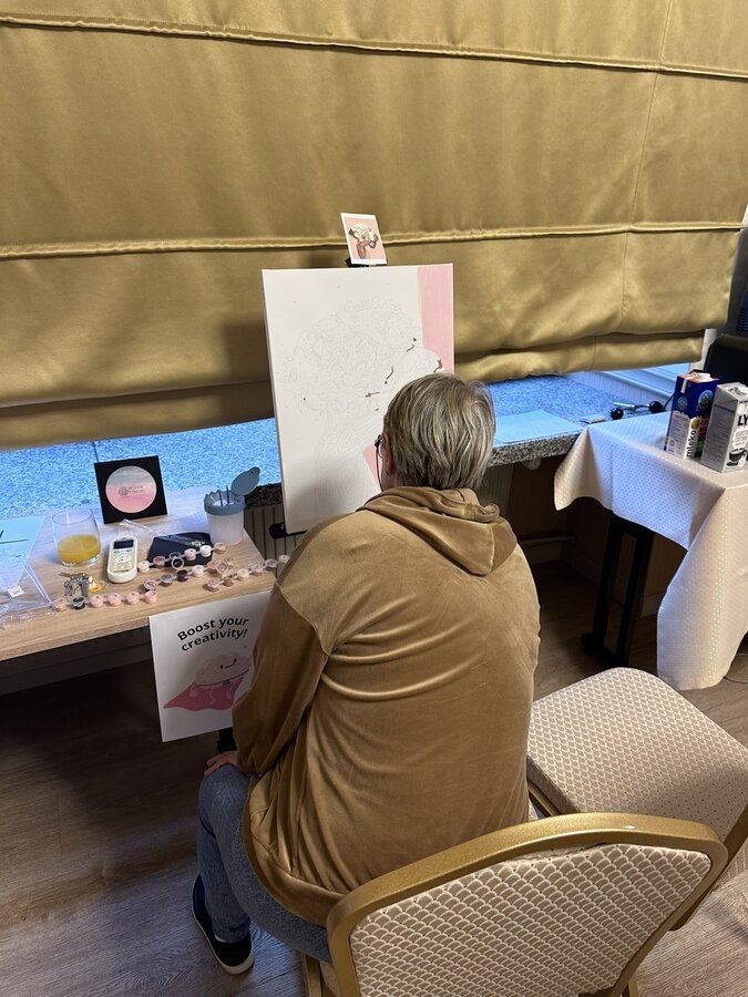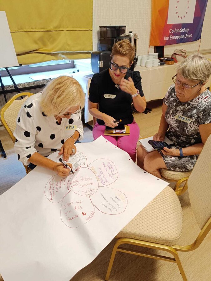 W czwartym dniu szkolenia skupiliśmy się na praktycznych działaniach – tworzyliśmy scenariusze warsztatów dla seniorów, które zrealizujemy w nadchodzących miesiącach w Polsce, Bułgarii i Włoszech. Zwieńczeniem dnia było ukończenie wspólnego obrazu malowanego po numerach, nad którym pracowaliśmy od pierwszego dnia. Atmosfera współpracy, kreatywności i wzajemnego wsparcia towarzyszyła nam przez cały czas. Wieczór zakończyliśmy refleksją nad tym, jak wiele nauczyliśmy się od siebie nawzajem.