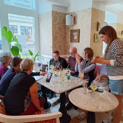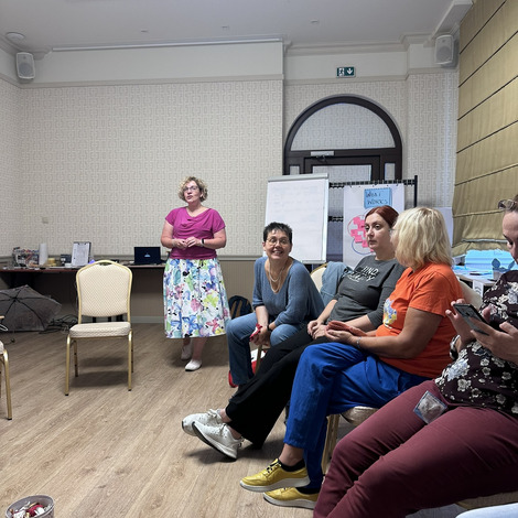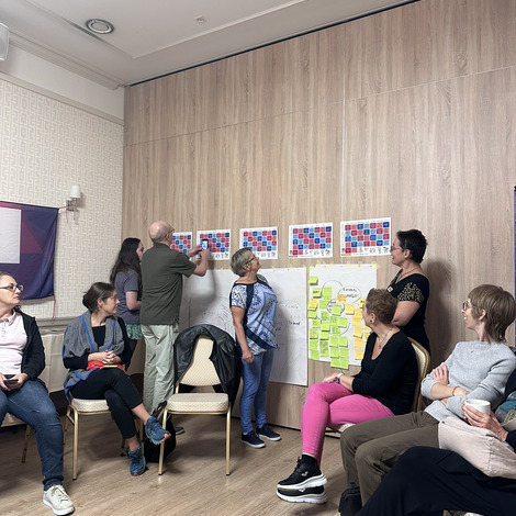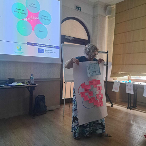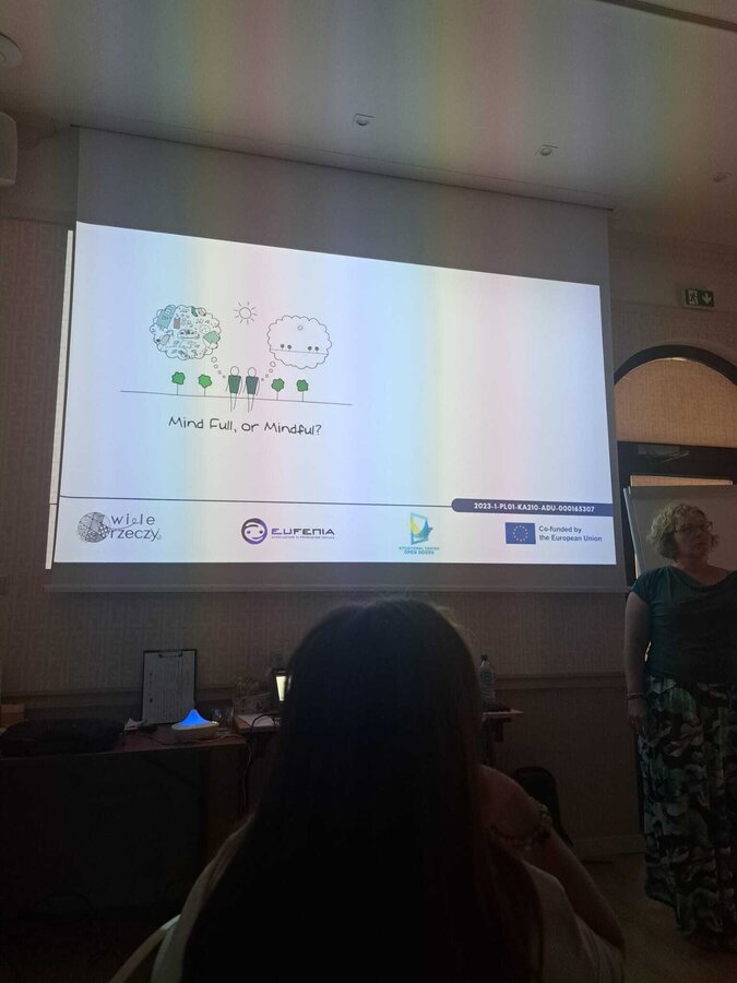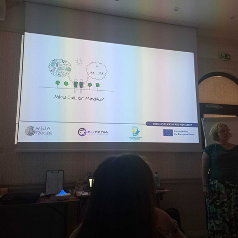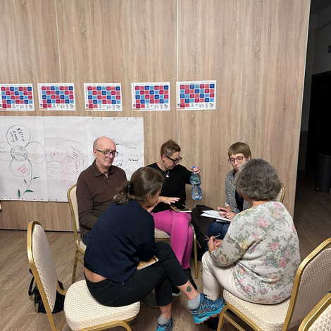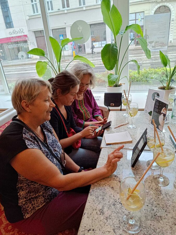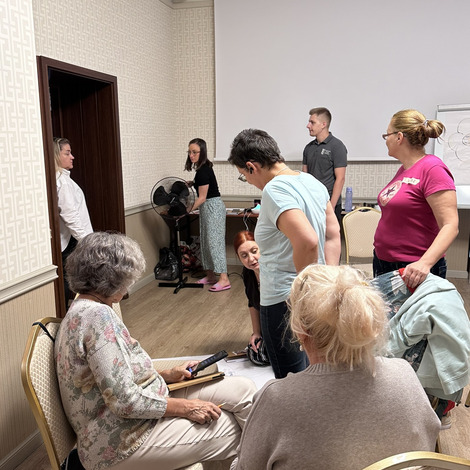 Trzeci dzień szkolenia rozpoczęliśmy od miejskiej kąpieli inspirowanej japońską praktyką „Shinrin Yoku”, czyli spacerem z intencją. Była to doskonała okazja, aby nauczyć się bycia „tu i teraz”, co jest nieocenione w pracy z seniorami. Po spacerze omawialiśmy techniki mindfulness, a kolejne warsztaty, prowadzone przez samych uczestników, dostarczyły nam cennych narzędzi, które wykorzystamy w swoich działaniach. Wellbeing i uważność stały się ważnym tematem, który przewijał się w wielu rozmowach.